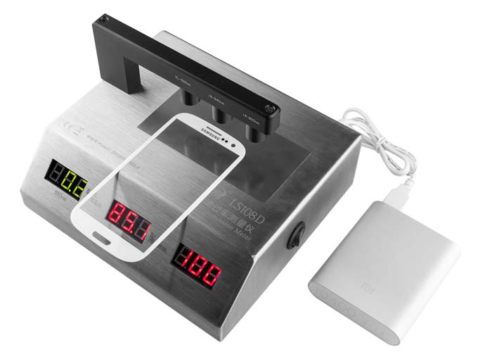 LS108A的測量孔徑是1mm,這樣有的手機(jī)鏡片的距離及位置感應(yīng)器孔太小,不能準(zhǔn)確的測量。LS108D,改進(jìn)的測試孔,測量更加準(zhǔn)確。5V AC/DC電源供電,也可移動電源(充電寶)供電(選配)。