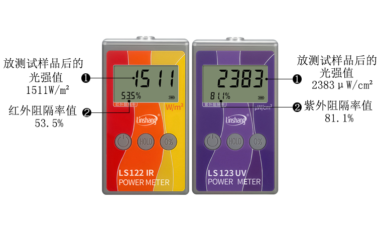 3. 紅外功率計(jì)和紫外功率計(jì)自動換算阻隔率,讀數(shù)簡單易懂。