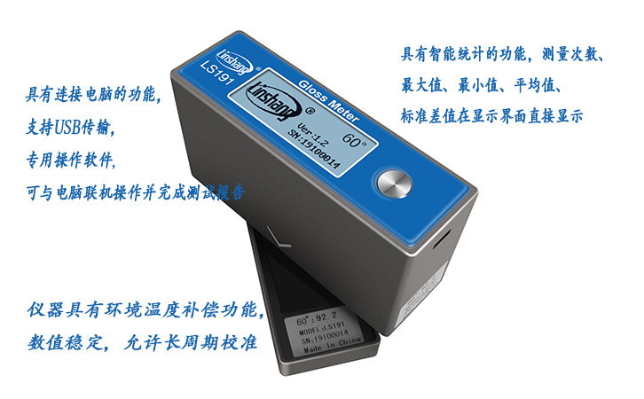 林上的LS191油漆光澤度儀具備上述多種功能,而且測量數(shù)據(jù)與BYK光澤度儀一致,是國產(chǎn)光澤度儀中的佼佼者。并且儀器具有溫度補(bǔ)償功能,光源會隨環(huán)境溫度的變化自動調(diào)節(jié)發(fā)光效率,保證溫度變化時,測量的準(zhǔn)確性不變化;還有智能統(tǒng)計界面,可以統(tǒng)計最大值,最小值,平均值和均方差值;儀器贈送電腦軟件,可以導(dǎo)出數(shù)據(jù),生成報表。林上的售后服務(wù)也是很好,30天無理由退換貨,一年質(zhì)保,讓你體驗(yàn)真正的零風(fēng)險,無憂購物。