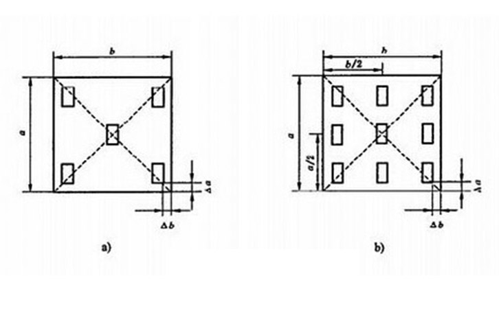 1、規(guī)格不大于(600*600)mm測試樣品,五個點測試,分別為四個角和中間點。圖a