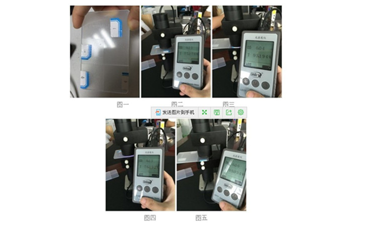 這次收到了一個客戶樣品(如上圖),測試不同四個點的透光率,樣品上可以看得出不同地方磨砂程度和厚度不同,這種樣品屬于乳白磨砂材料,只能用乳白材料透光率儀LS117來測試,測試數(shù)據(jù)分別如下圖(圖二、圖三、圖四、圖五),不同地方的透光率不同,最高達(dá)到93%,最低的有76%。