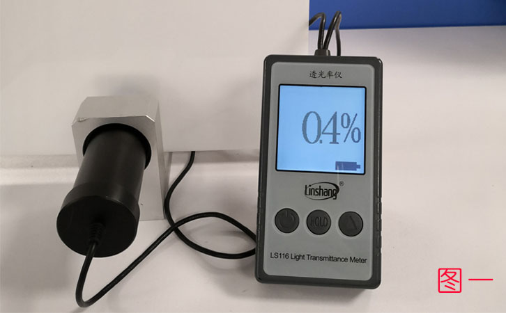 圖一是用高精度透光率儀LS116測(cè)量的乳白塑料的透光率為0.4% 。