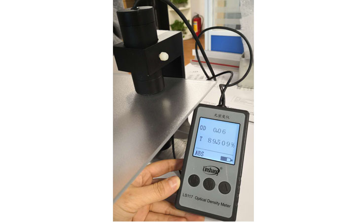 磨砂玻璃的透光率通常用林上科技便攜式透光率儀來測量。儀器光源符合CIE明視覺函數(shù)標(biāo)準(zhǔn),確保通過計(jì)量院檢測。