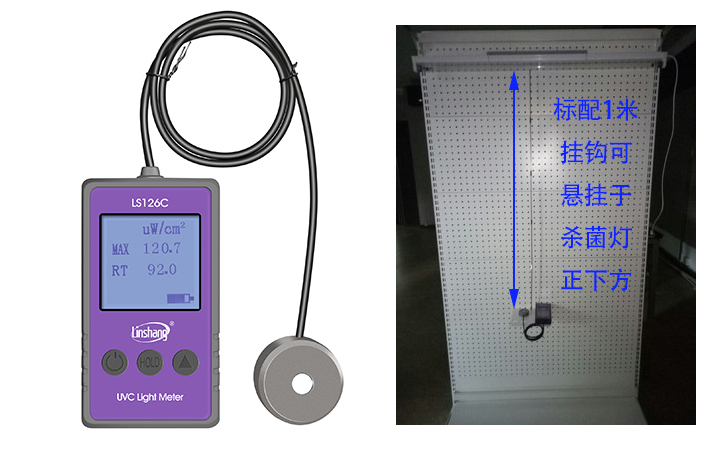 林上LS126C殺菌燈紫外線輻照計標備1米長掛鉤,方便懸掛于殺菌燈下測試,可確保通過國家計量院檢測,一年質(zhì)保,30天非人為損壞可無理由退換貨。選購定期檢測殺菌燈光照強度的儀器時,林上LS126C紫外線輻照計將會是您的不二之選。